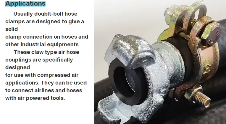 Wide application: Hose clamps are suitable for various industries, including automobiles, machinery, construction, chemical industry and other fields, and are used to fix pipes, hoses and other connections.